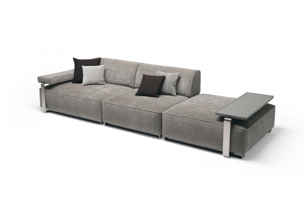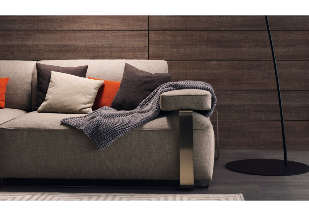 Cannes conçu par Ferruccio Laviani pour MisuraEmme est un canapé disponible en version fixe et modulaire caractérisé par de multiples possibilités de composition, composé de 9 éléments de base qui peuvent être combinés pour former des compositions linéaires et angulaires. Structure portante en bois avec sangles élastiques, recouverte de mousse de polyuréthane de différentes densités et d'un matelas en plumes sur l'assise et le dossier. Pièces métalliques en finition bronze 524. Disponible avec ou sans fers latéraux décoratifs. Revêtement en tissu ou cuir.