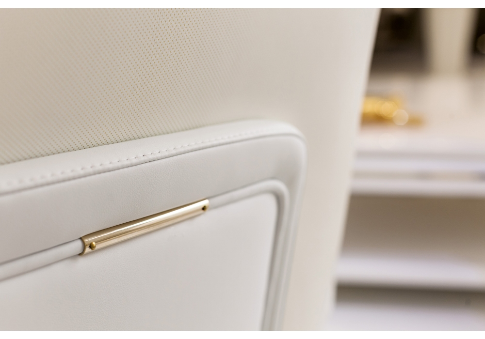 Blanche conçu par Andrea Bonini pour Turri est un canapé avec structure en contreplaqué et bois massif rembourré de mousse de polyuréthane multi-densité et revêtement en différents tissus ou cuirs. Pieds et détails en métal finition or clair. Disponible en différentes dimensions.