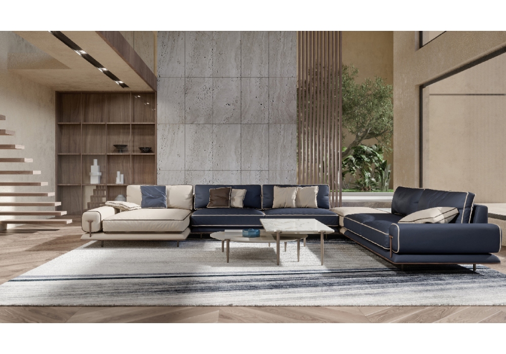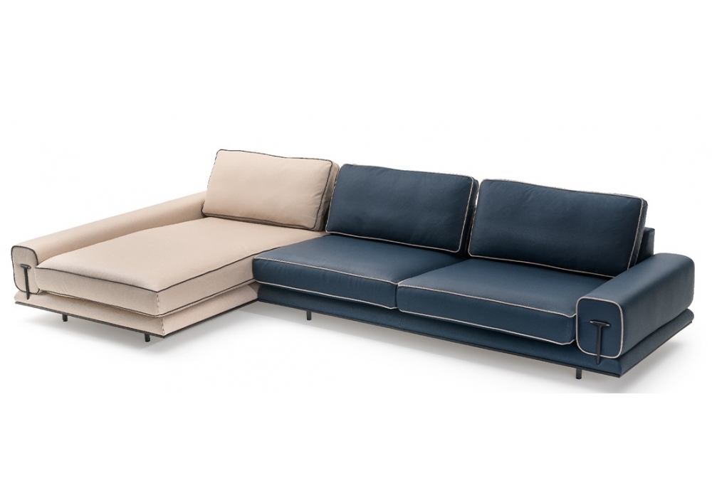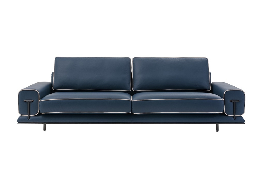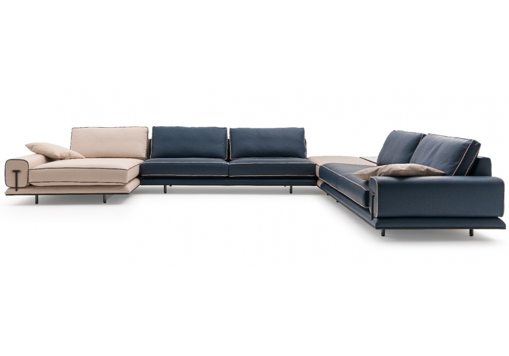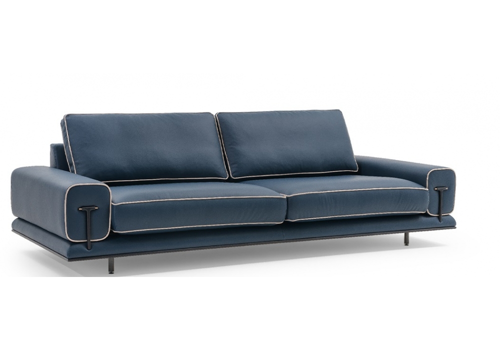 Blues conçu par Giuseppe Viganò pour Turri est un canapé avec structure en bois massif et contreplaqué rembourré de mousse de polyuréthane multi-densité et structure portante en métal. Rembourrage en différents tissus ou cuirs non déhoussables. La version bicolore est disponible sur demande. Les pieds sont en métal finition gris anthracite avec des pieds en matière plastique. Détails en noyer massif avec parties métalliques en différentes finitions.