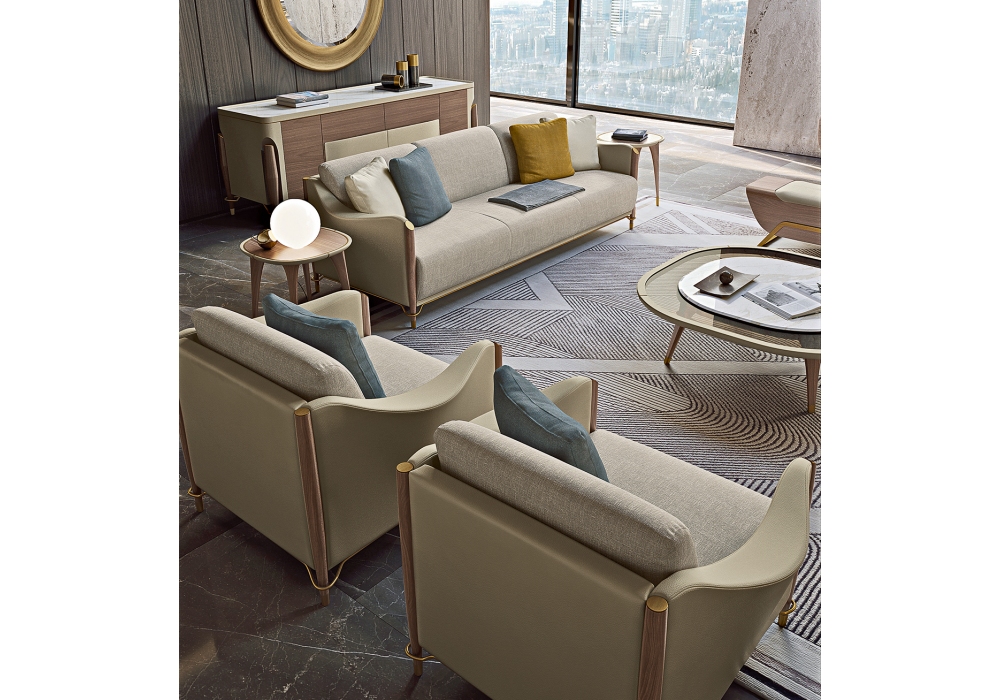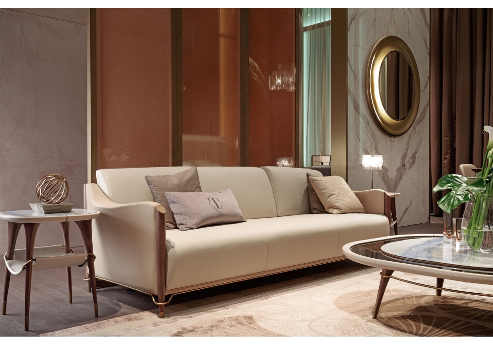 Melting Light conçu par Frank Jiang pour Turri est un canapé avec structure en bois massif et contreplaqué rembourré en mousse de polyuréthane multi-densité avec coussins et revêtement de structure en différents cuirs ou tissus. Pieds en noyer massif et parties métalliques en or ou bronze brossé. Disponible en différentes dimensions.