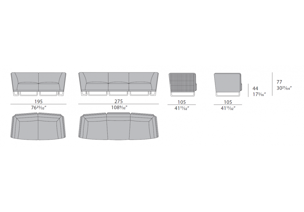 | Dimensions | 195 x 105 x H 77 cm; 275 x 100 x H 77 cm. |