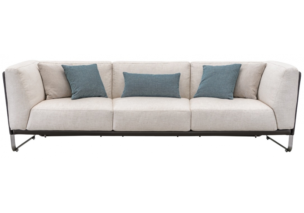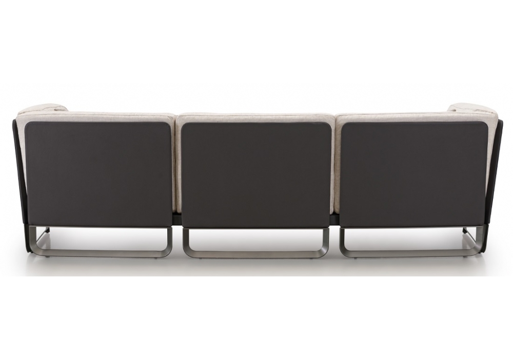 Milano conçu par Blengini Ghirardelli pour Turri est un canapé avec structure en MDF, contreplaqué et bois massif rembourré de mousse de polyuréthane de différentes densités. Corps et coussins recouverts de différents cuirs ou tissus. Les pieds sont en métal finition nickel brossé avec pieds en matière plastique. Disponible dans la version avec coque lisse ou tissée.