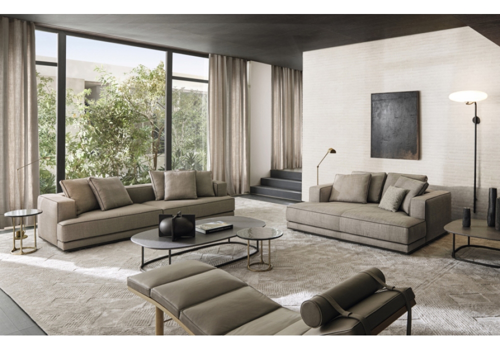 Augusto conçu par Vincent Van Duysen pour Molteni&C est un canapé composé d'une base en aluminium peint, d'un revêtement en tissu ou cuir et d'inserts gros-grain en ruban de coton polyester. Rembourrage de la structure en mousse de polyuréthane à densité variable à haute capacité. Disponible en différentes finitions et dimensions.