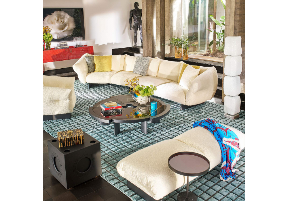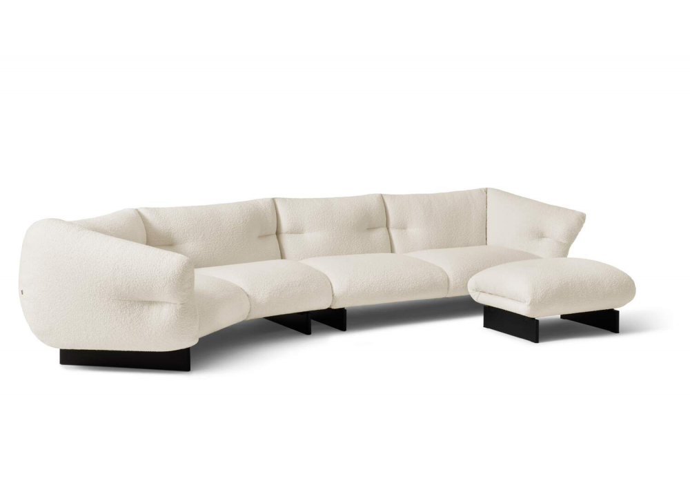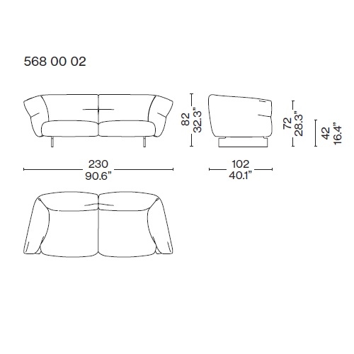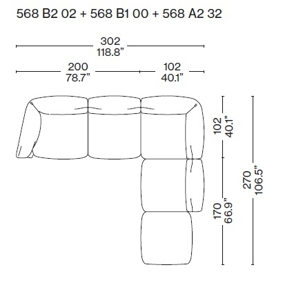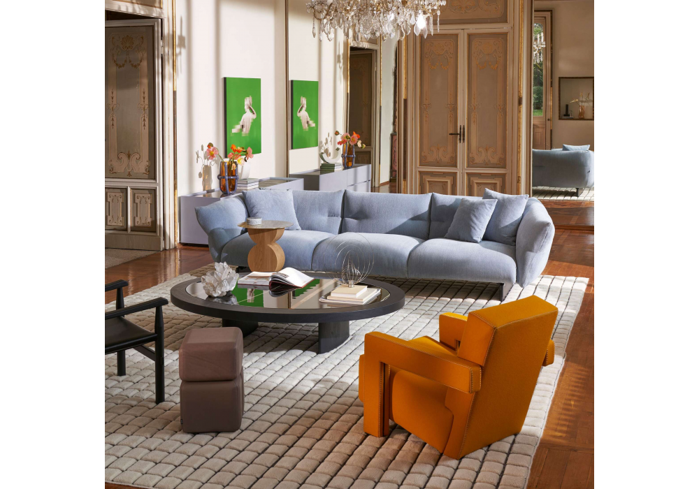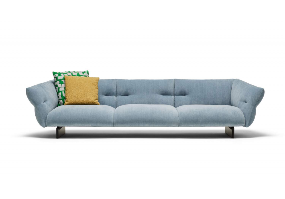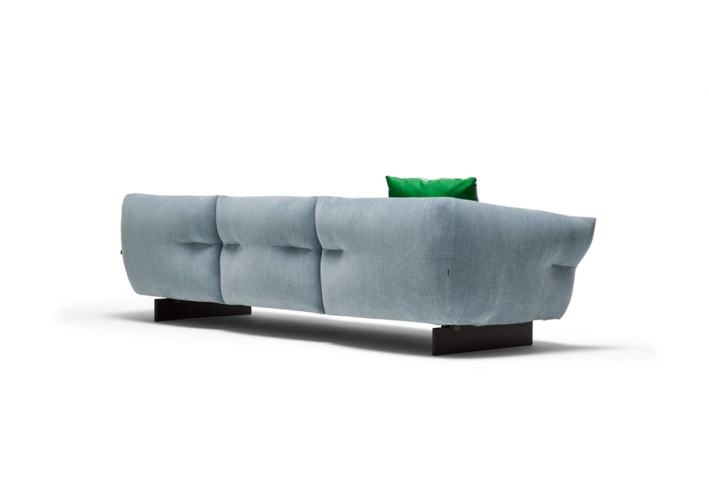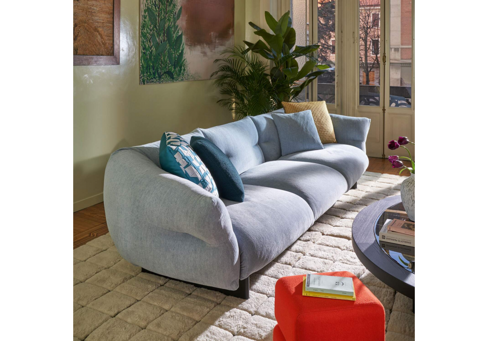 Mon-Cloud conçu par Patricia Urquiola pour Cassina est un canapé réalisé avec assise en métal avec ceinture élastique recouverte de tissu. Dossier et accoudoirs en métal avec sangles élastiques recouvertes de tissu avec inserts amovibles en polyuréthane avec un pourcentage de polyols d'origine biologique. Sac matelassé rempli de fibre de PET recyclé, doublure en tissu amovible.