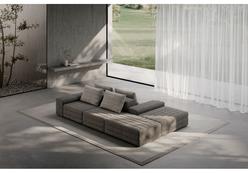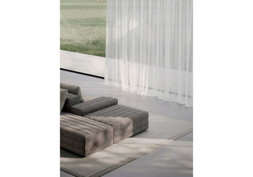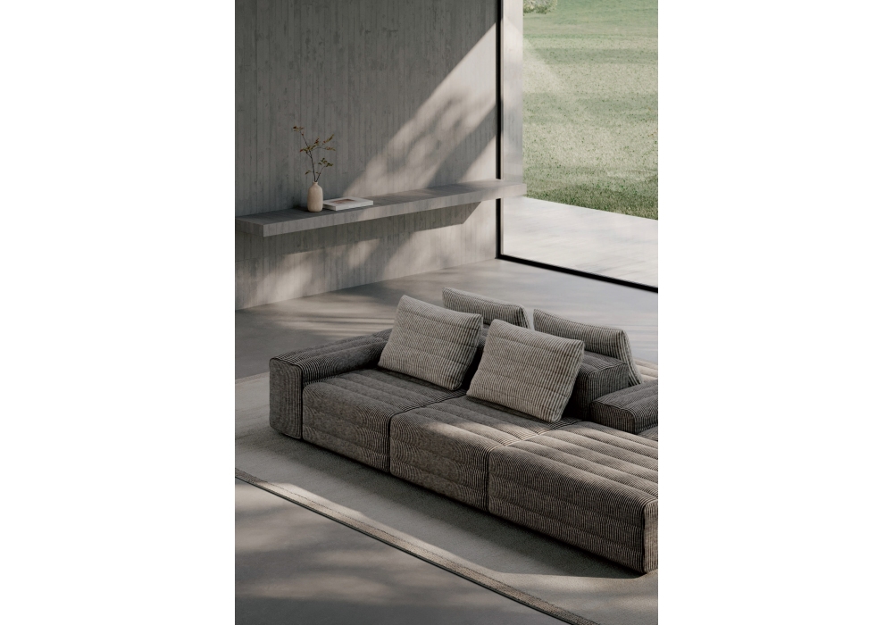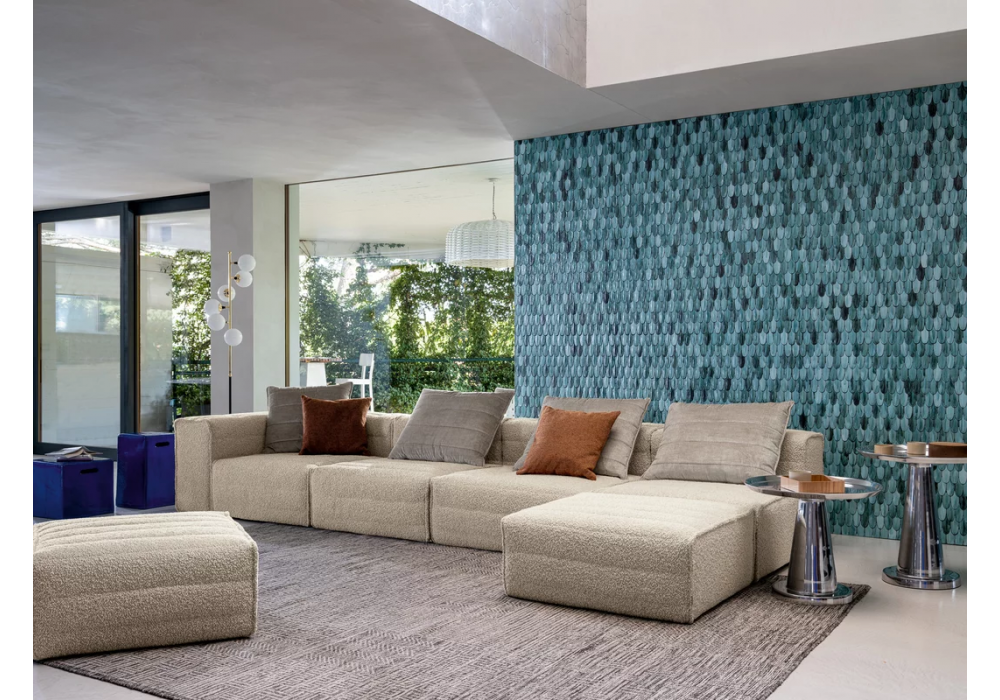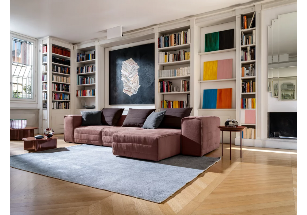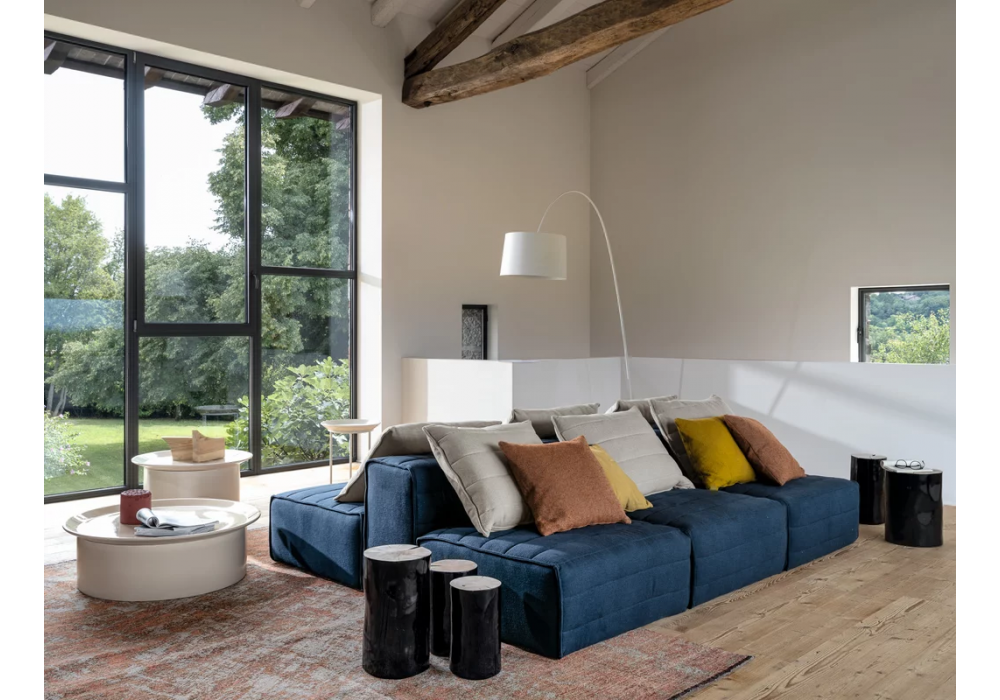 Samet conçu par Federica Biasi pour Gervasoni est un canapé modulable réalisé avec un rembourrage en mousse de polyuréthane et un revêtement en tissu amovible.