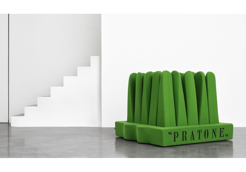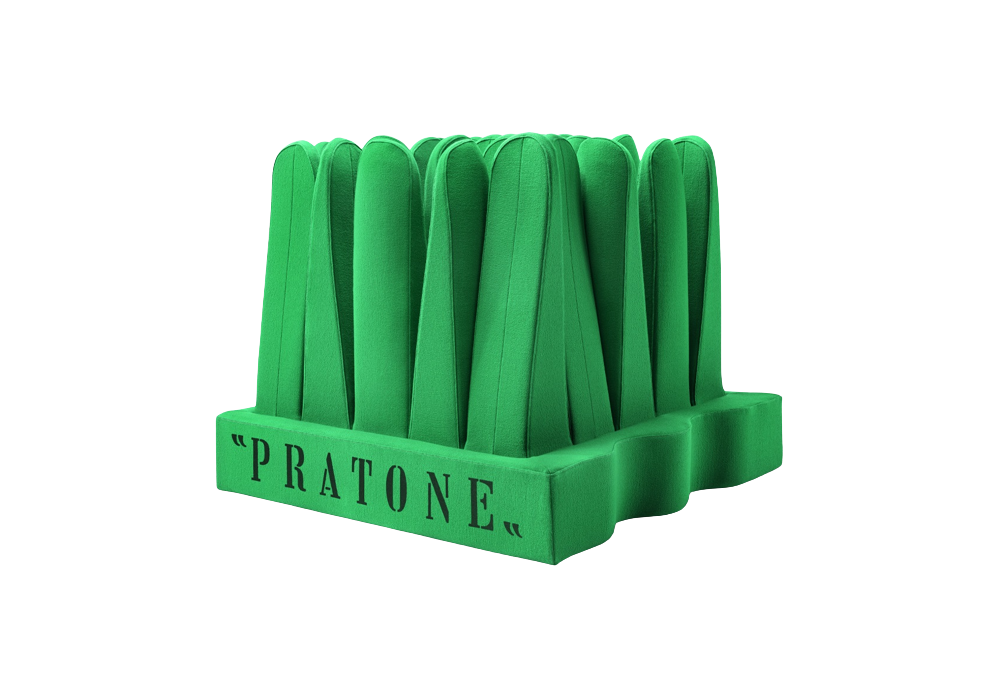 Pratone Forever conçu par Giorgio Ceretti, Piero Derossi et Riccardo Rosso pour Gufram est un siège en polyuréthane souple recouvert de laine bouclée. Disponible en 3 finitions.