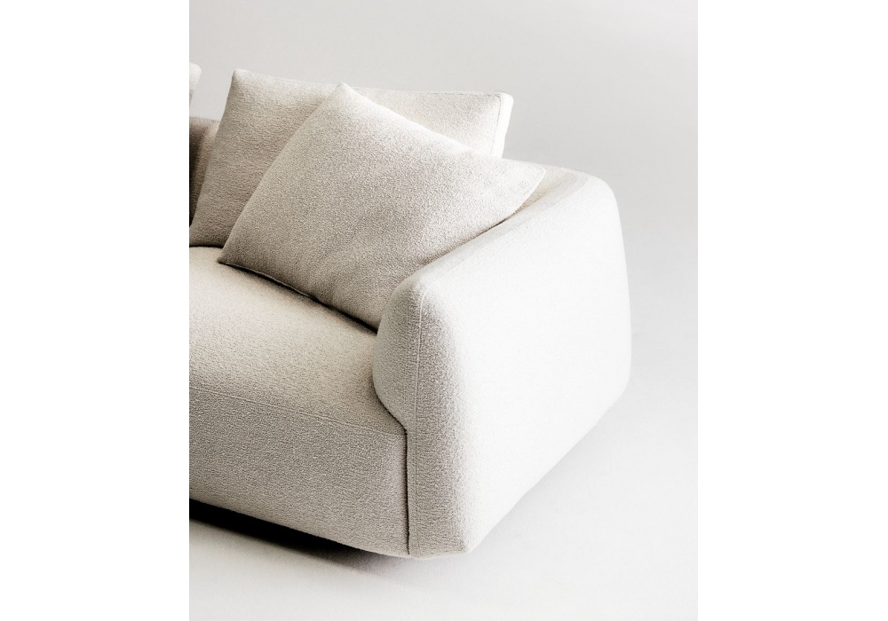 Naxos conçu par Palomba Serafini Associati pour Ferri 1956 est un canapé modulable avec structure en bois de sapin massif et panneaux de particules, avec sangles élastiques. Rembourrage en mousse de différentes densités. Pieds en bois noir.
