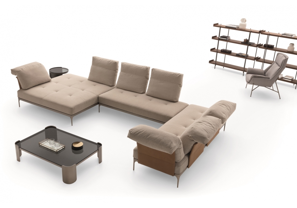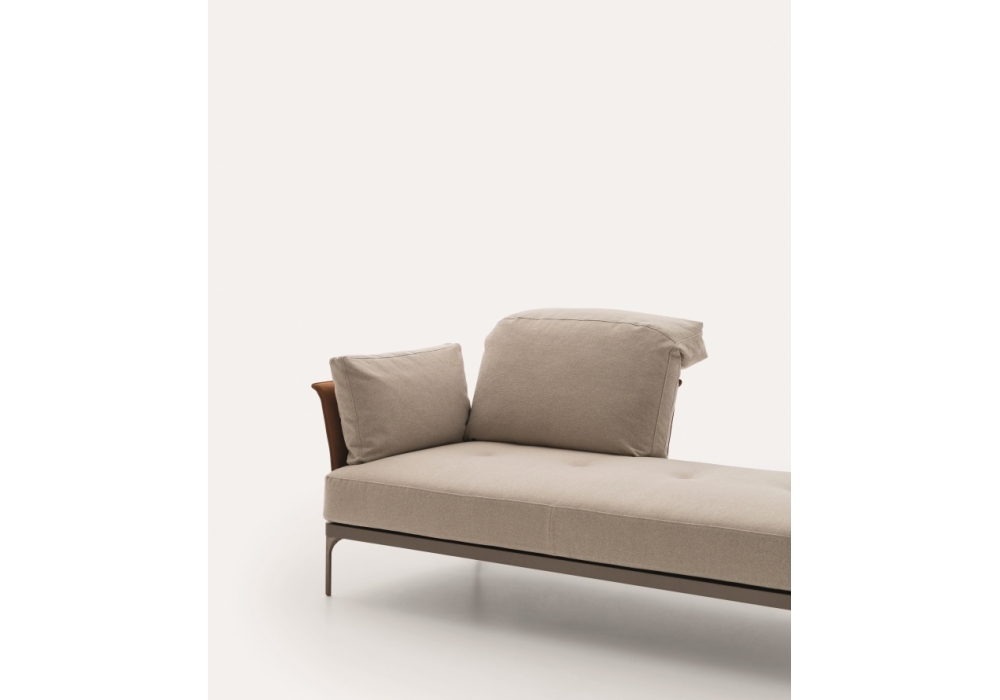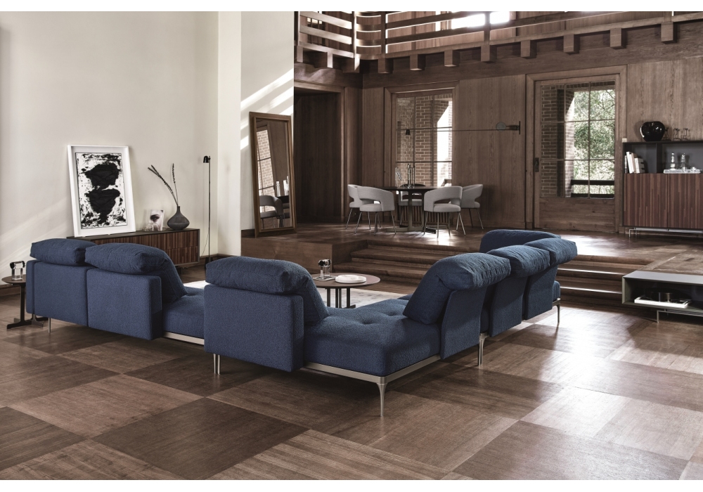 Ada conçu par Stefano Spessotto pour Ditre Italia est un canapé caractérisé par des barres de renfort en métal, un dossier fin en contreplaqué courbé. Assise et dossier rembourrés avec revêtement en tissu ou en cuir. Disponible en différentes finitions et configurations.