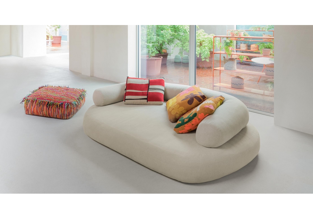 Noah conçu et produit par CRS Paola Lenti est un canapé dont le dossier est constitué d'un seul élément cylindrique mobile. Garnissage de l'assise en polyéthylène expansé recyclable mélangé à de la fibre polyester bleue Aerelle®, couche supérieure en polyester recyclable. Garnissage du dossier en polyester expansé recyclable mélangé à de la fibre polyester bleue Aerelle®. Doublure intérieure fixe en coton pour l'assise, en tissu polyester noir espacé pour le dossier, revêtement extérieur amovible en lin des Flandres.