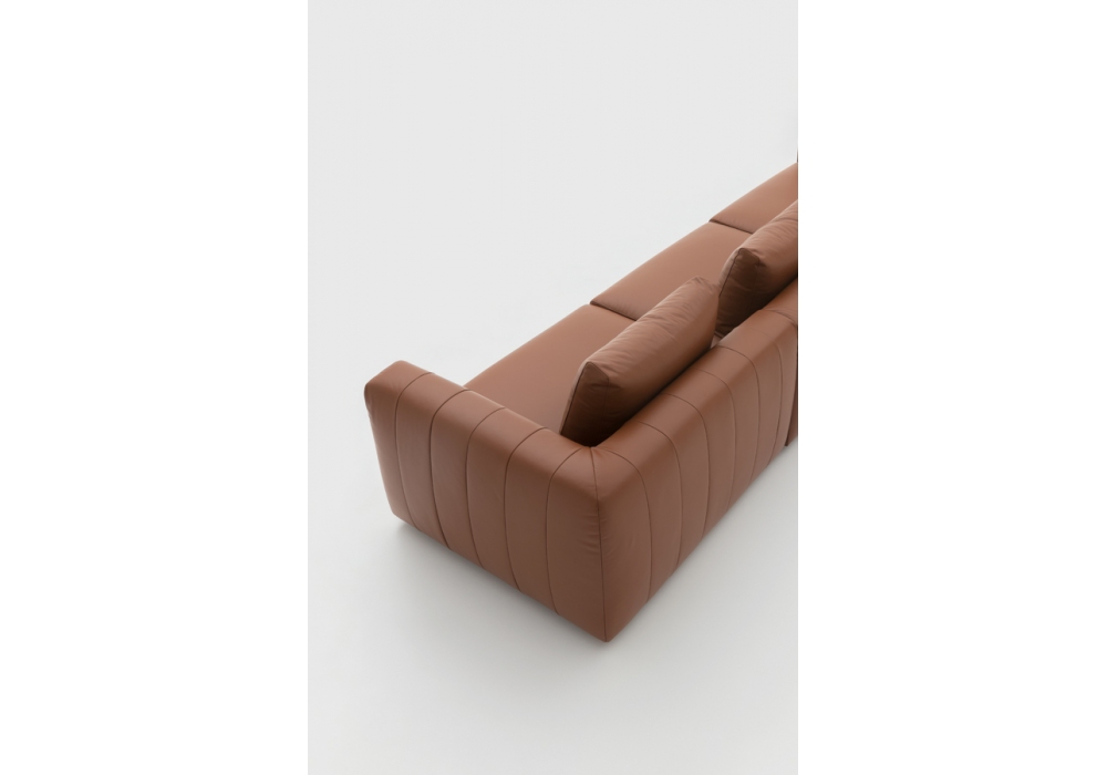 Tobias conçu par Pier Luigi Frighetto pour Pianca est un canapé modulable réalisé avec un revêtement en tissu ou en cuir. Les accoudoirs, dossiers et poufs se caractérisent par le matelassage de lattes verticales ton sur ton : la finition particulière crée d'élégants jeux de lumière sur les surfaces, se révélant comme un signe graphique distinctif et raffiné. Les différents modules, latéral, d'angle, central, pouf et chaise longue, vous permettent de créer des configurations sur mesure, parfaites pour n'importe quel environnement.