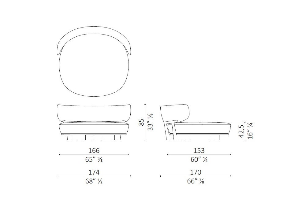 | Dimensions | • 166/174 x 153/170 x H 85 cm |
