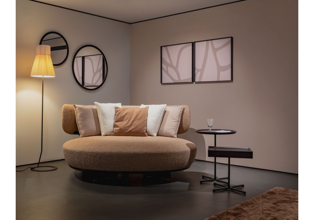 Iconest conçu par Roberto Lazzeroni pour Ceccotti Collezioni est un canapé avec structure en noyer américain massif. Assise et dossier en contreplaqué de peuplier, rembourrés, recouverts de tissu ou de cuir. Pieds en laiton. Disponible en différentes finitions.