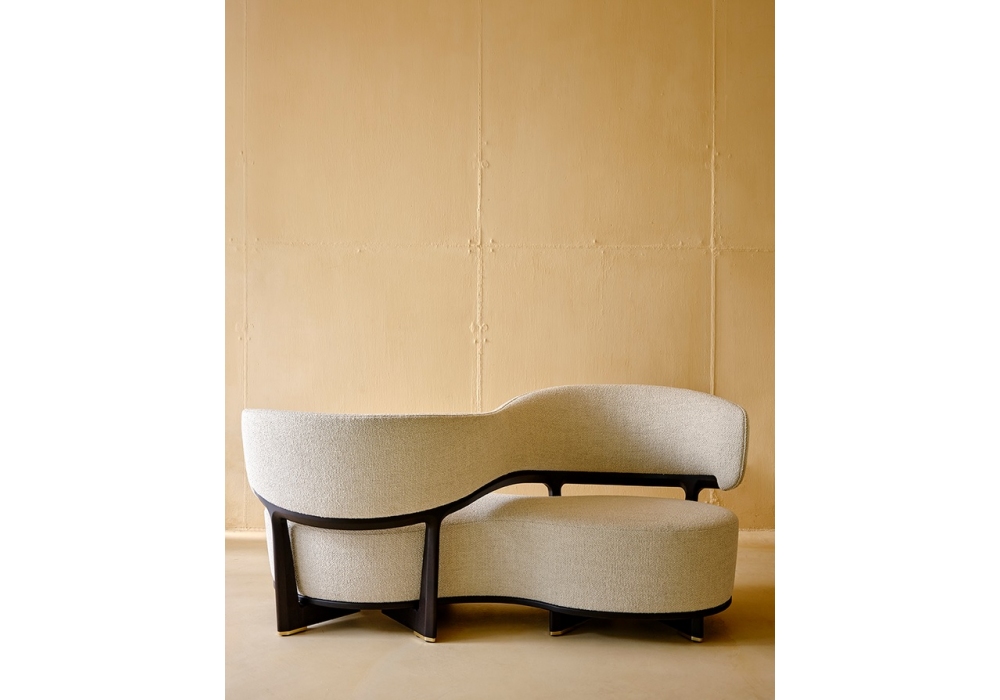 Ico Vis à Vis conçu par Roberto Lazzeroni pour Ceccotti Collezioni est un canapé avec structure en noyer américain massif. Assise et dossier en contreplaqué de peuplier, rembourrés, recouverts de tissu ou de cuir. Pieds en laiton. Disponible en différentes finitions.