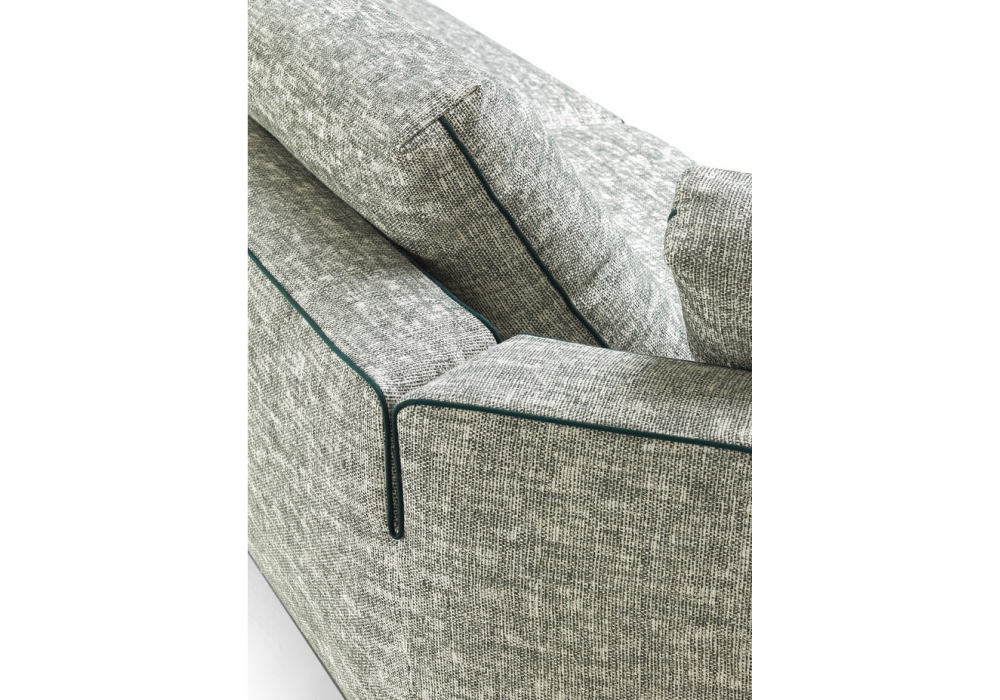 Fillungo conçu par Giuseppe Casarosa pour Ceccotti Collezioni est un canapé modulable avec structure interne en contreplaqué de hêtre massif et peuplier. Ressort avec sangles élastiques sur l'assise. Piètement en noyer américain massif avec pieds et embouts en laiton. Assise et dossier rembourrés et recouverts de tissu ou de cuir. Version en tissu amovible. Disponible en différentes finitions et configurations.