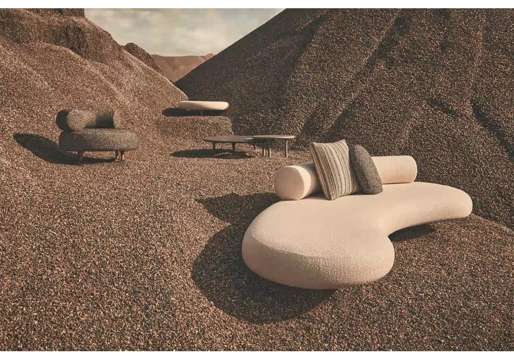 Honore conçu par Elisa Ossino pour Depadova est un canapé d'extérieur avec structure en acier inoxydable et matériau inerte et pieds en bois d'iroko massif avec semelle intérieure en thermoplastique. Le rembourrage est en mousse de polyuréthane de différentes densités et ouate de polyester recouverte de tissu polyester hydrofuge. Honorè est disponible en différentes finitions de tissus et modèles.
