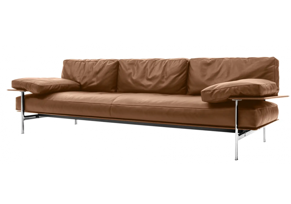 Diesis, conçu par Antonio Citterio et Paolo Nava pour B&B Italia, est un canapé avec structure portante en tôle et profilés en acier avec supports en polyuréthane revêtus de cuir. Le rembourrage est en polyuréthane à densité différenciée et polyuréthane viscoélastique à mémoire de forme avec revêtement en fibre de polyester. Le revêtement est en tissu ou en cuir. Les pieds et la structure de support sont en aluminium moulé sous pression et tubes en acier. Revêtement de la structure en différents cuirs.