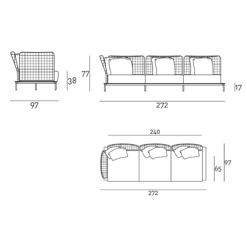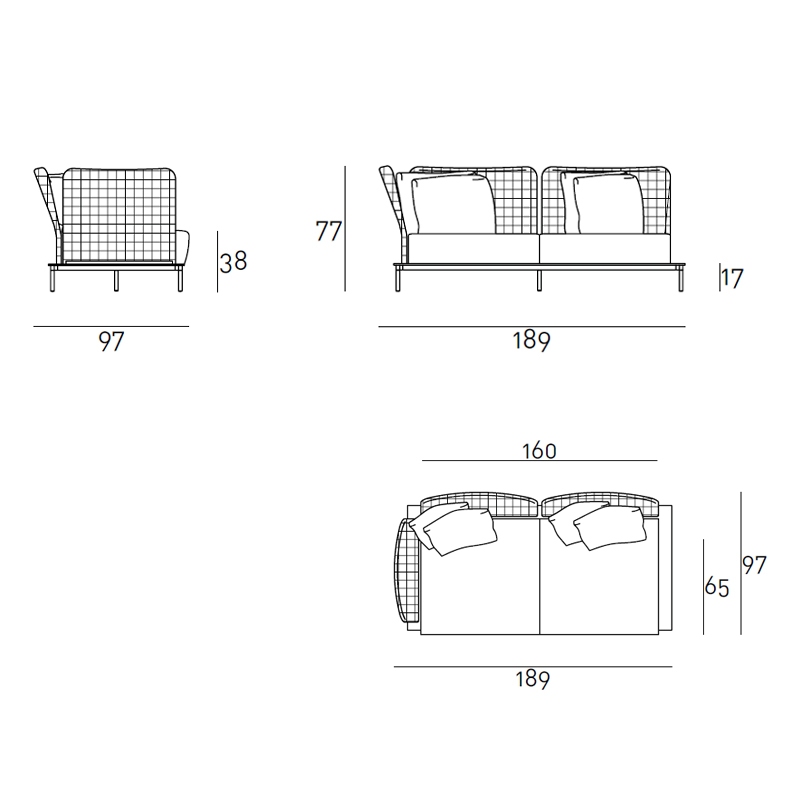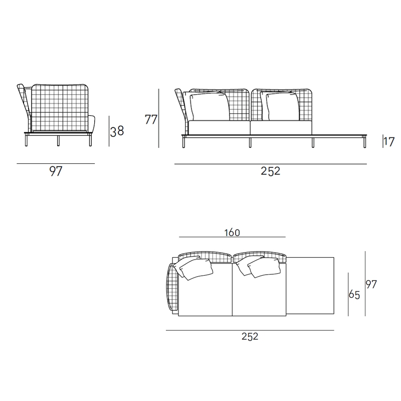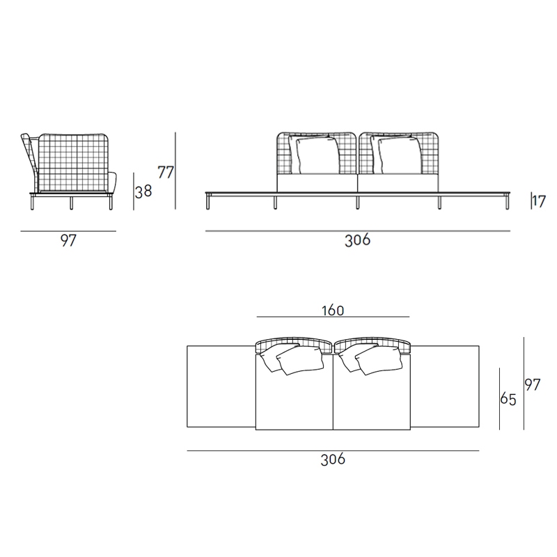 | Dimensions | 189 x 97 x H 77 cm; 189 x 97 x H 77 cm; 252 x 97 x H 77 cm; 272 x 97 x H 77 cm; 306 x 97 x H 77 cm. |
