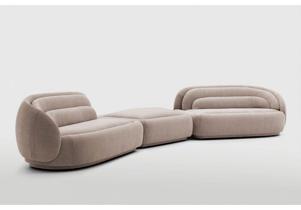 Peonia conçu par Cristina Celestino pour Pianca est un canapé modulable réalisé avec un revêtement en tissu ou en cuir. Socle laqué noir mat.