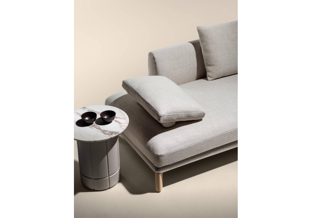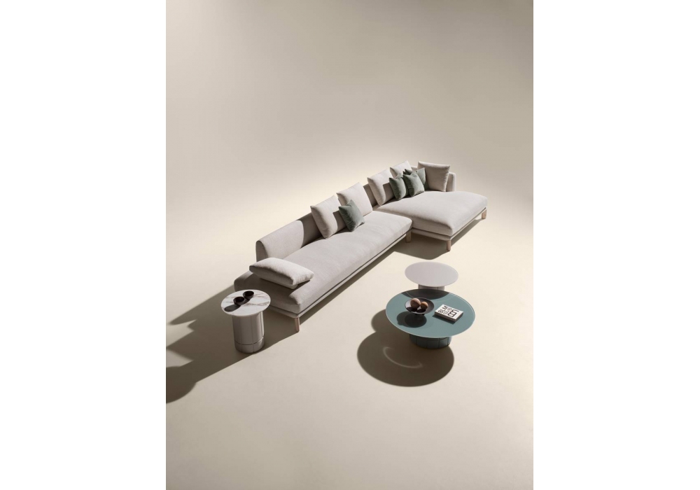 Altana, conçu par Monica Armani pour Lago, est un canapé modulable avec rembourrage moelleux et revêtement en tissu pour offrir un confort optimal. Pieds en bois de chêne à section ovoïde qui se croisent à 45° avec la base.