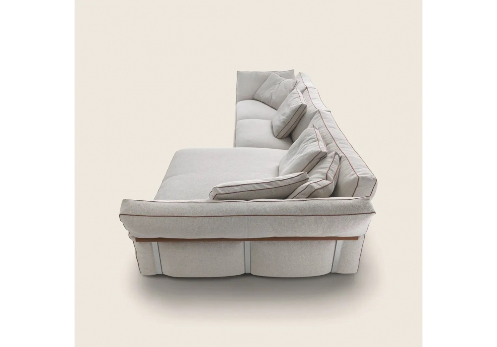 Camelot conçu par Antonio Citterio pour Flexform est un canapé modulable avec une plateforme en contreplaqué recouverte de cuir, dossier et accoudoirs en métal avec barres en bois de noyer massif, possibilité de recouvrir les barres en cuir régénéré de la même couleur que la plateforme. Coussins d'assise et de dossier en mousse polyuréthane, revêtement en tissu ou cuir. Disponible en différentes finitions et plusieurs configurations.