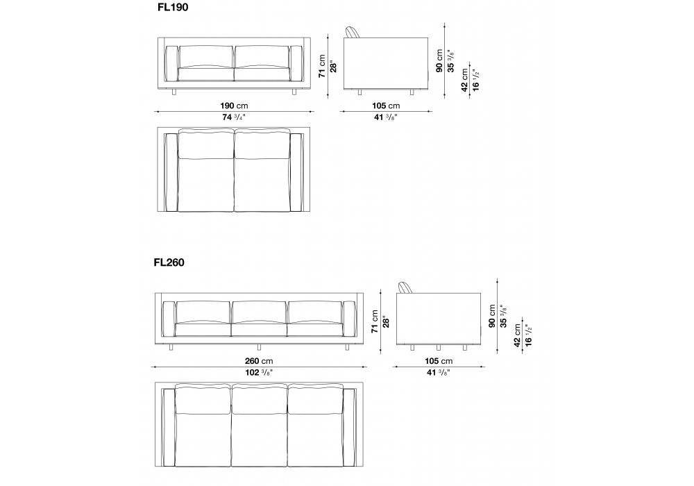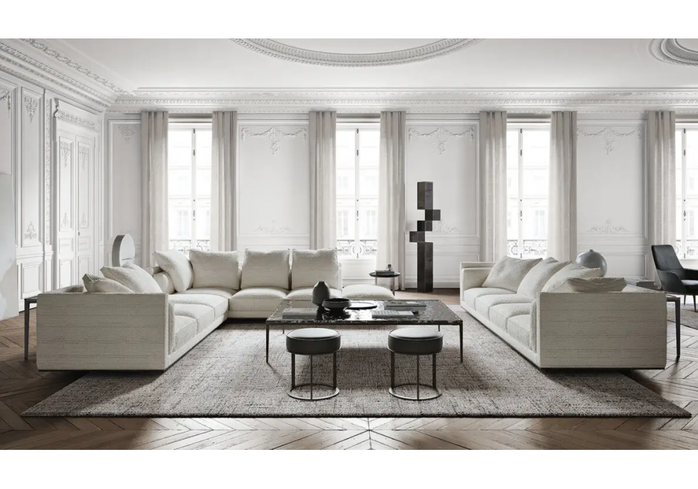 Florius conçu par Antonio Citterio pour Maxalto est un canapé avec bord inférieur en aluminium peint en différentes finitions et revêtement en tissu ou en cuir.