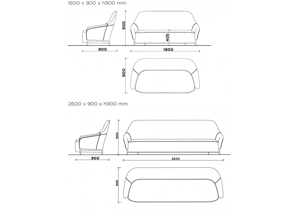 | Dimensions | 180 x 90 x H 90 cm; 260 x 90 x H 90 cm |