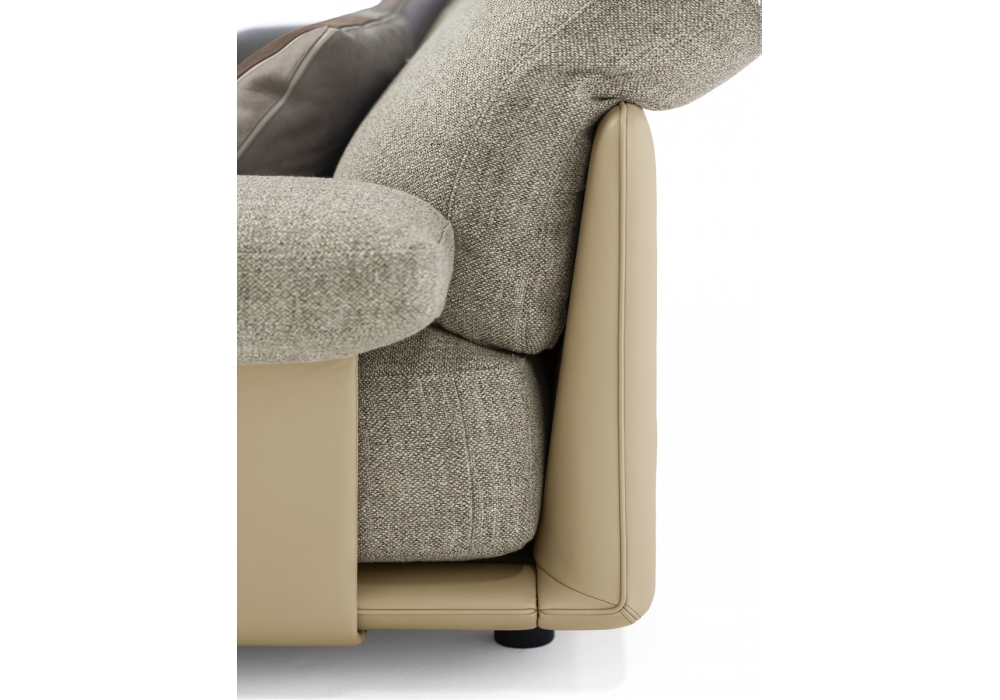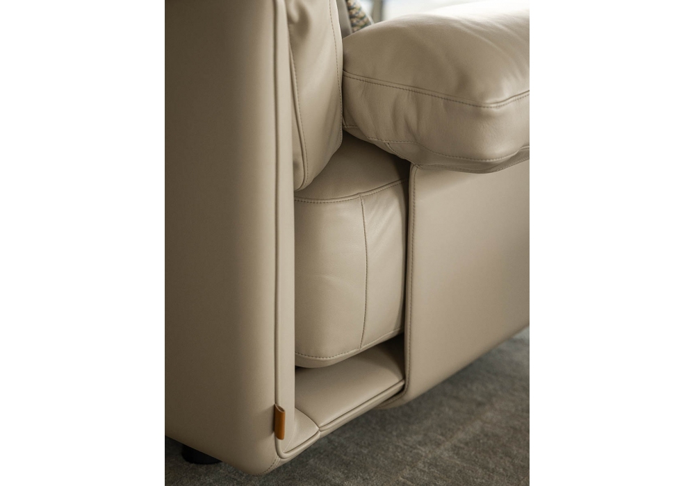 Blisscape conçu par Ludovica Serafini et Roberto Palomba pour Poltrona Frau est un canapé linéaire ou modulable doté d'une structure métallique sur laquelle repose une structure en hêtre massif, peuplier et contreplaqué de bouleau, légèrement rembourrée et revêtue de cuir Pelle Frau®. La plateforme en cuir accueille les riches coussins amovibles de l'assise, du dossier et des accoudoirs, également revêtus de cuir Pelle Frau® ou de tissu. Chaque coussin de dossier est réglable en hauteur grâce à un mécanisme à baïonnette, et le rembourrage des différentes zones est réalisé avec une technologie similaire à celle des matelas, favorisant respirabilité, souplesse et maintien de la forme.