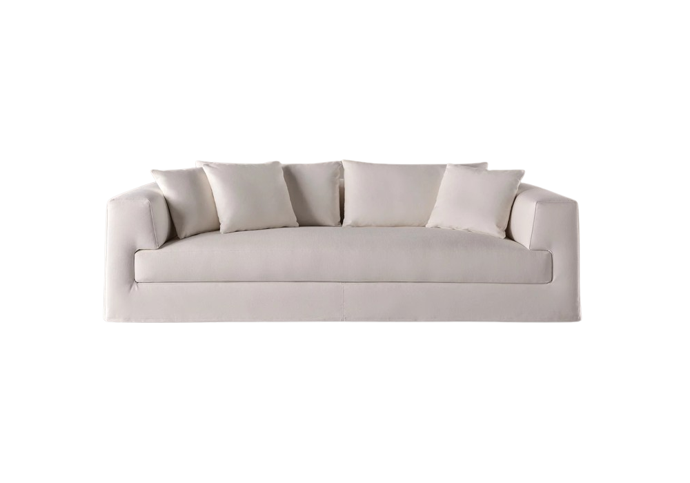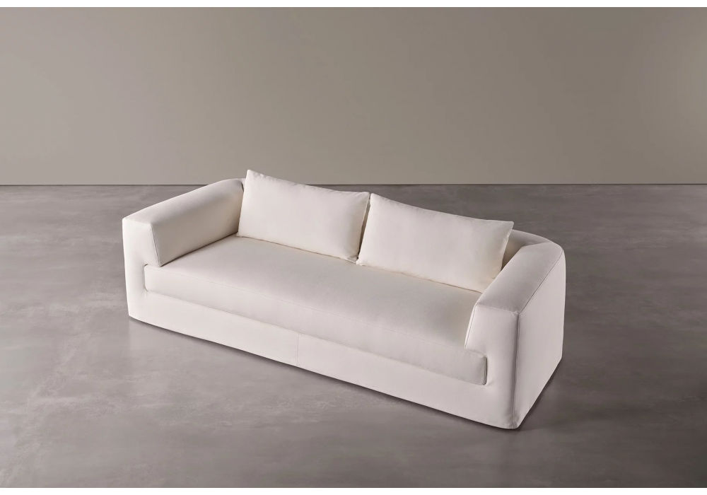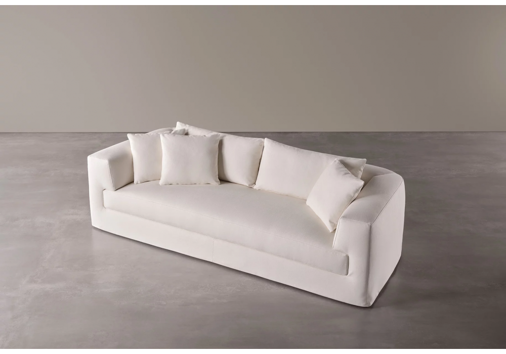 Roger Ghost conçu par Andrea Parisio pour Meridiani est un canapé linéaire revêtu de différents tissus. Pieds en ABS noir.