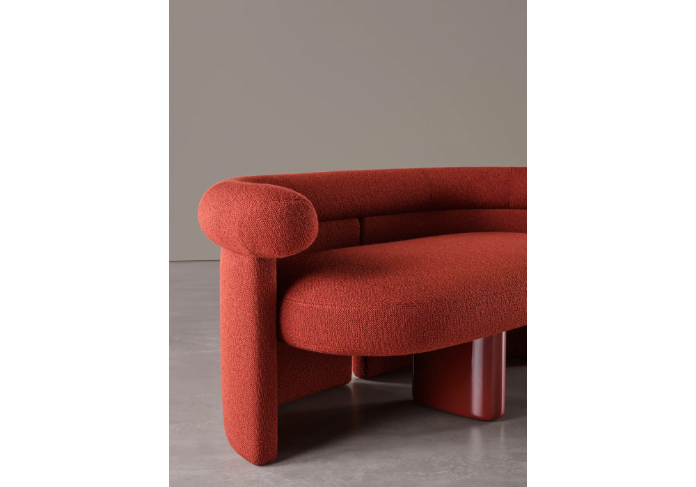 Jeanette conçue par Andrea Parisio pour Meridiani est une love seat avec un pied central en hêtre teinté noir ou laqué brillant ou mat. Revêtement disponible en différents tissus.