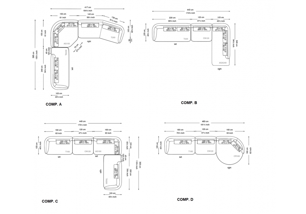 Craig conçu par Cattelan Italia est un canapé avec une structure en contreplaqué de bouleau et un rembourrage en polyuréthane à densité variable avec revêtement en fibre synthétique enduite de résine. Il propose des modèles uniques et modulables. Disponible en différentes finitions et dimensions.