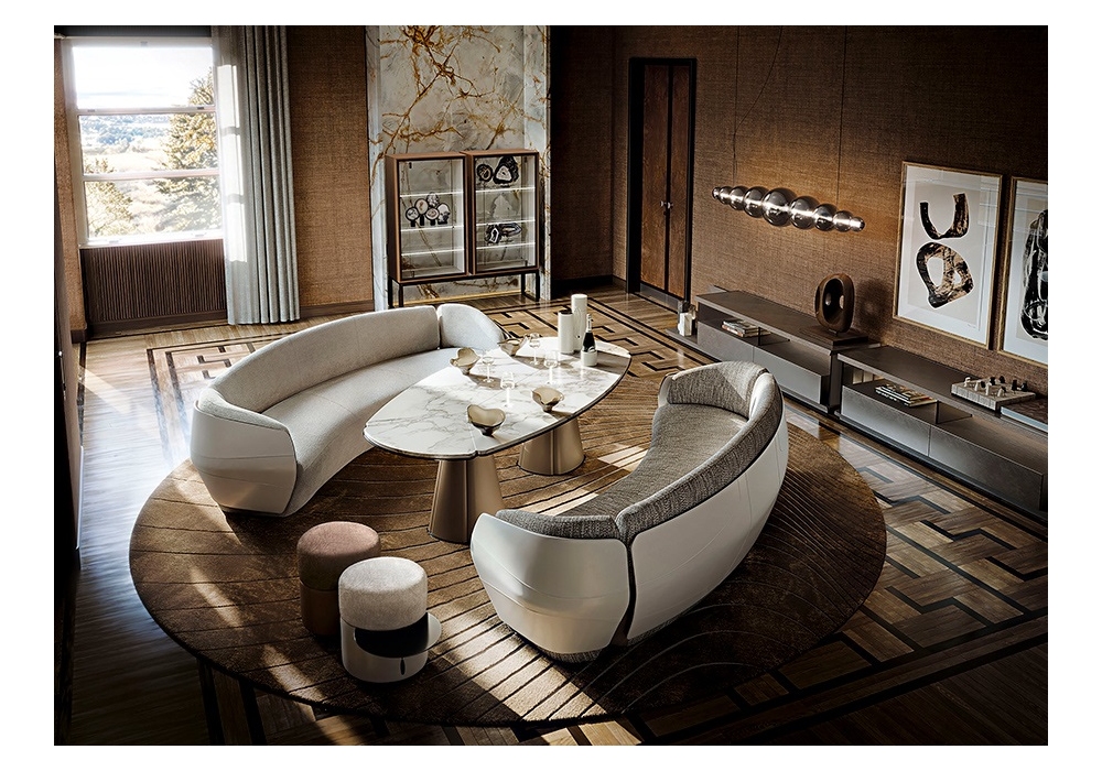 Lorelei conçu par Giorgetti R&D est un canapé de taille fixe composé de trois coques rigides en polyuréthane, entièrement revêtues de cuir. Les coutures dynamiques et raffinées sont aussi esthétiques que techniques. Un insert périmétrique et un insert au dossier de l'assise sont aussi en cuir.
