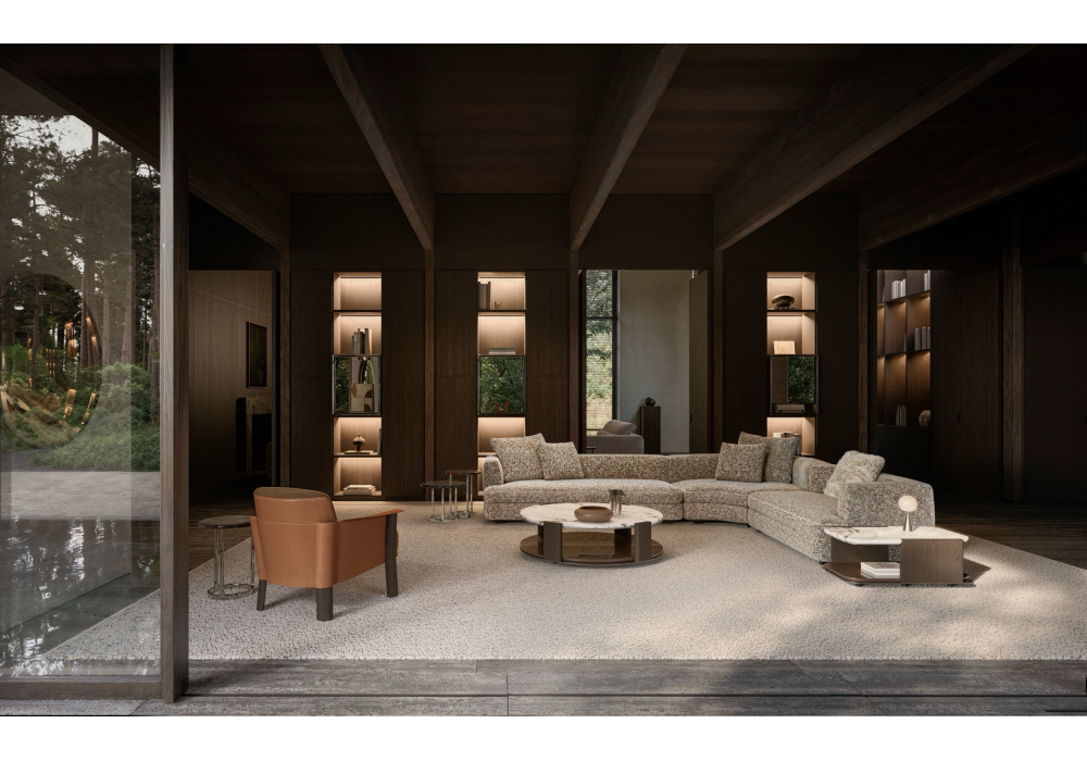 Edmond conçu par Christophe Delcourt pour Molteni&C est un système de canapé modulable au design contemporain et polyvalent, caractérisé par des formes douces et des passepoils contrastés. Sa structure est composée de sapin massif et de panneaux de bois d'ingénierie avec sangles élastiques, et est garnie de mousse de polyuréthane à densité variable. Les coussins sont en polyuréthane et fibres de polyester, recouverts de coton. Pieds en acier peint avec embouts antidérapants. Disponible en tissu ou en cuir.