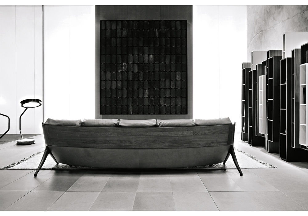 DC 290 by Ceccotti Collezioni is a sofa made in solid American walnut, body in poplar plywood covered in polyurethan foam of various desities; seat cushions in foam with upper layer in down, back cuscions in down.