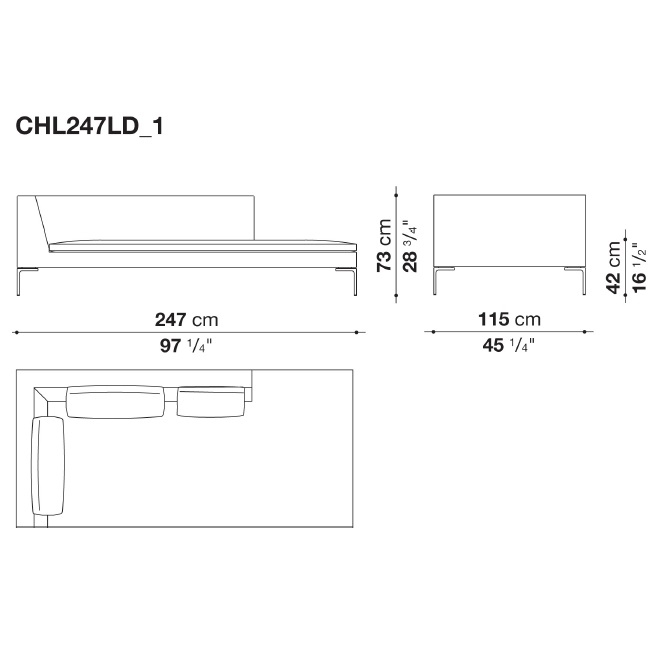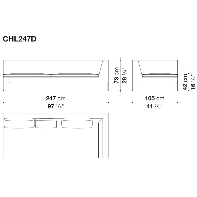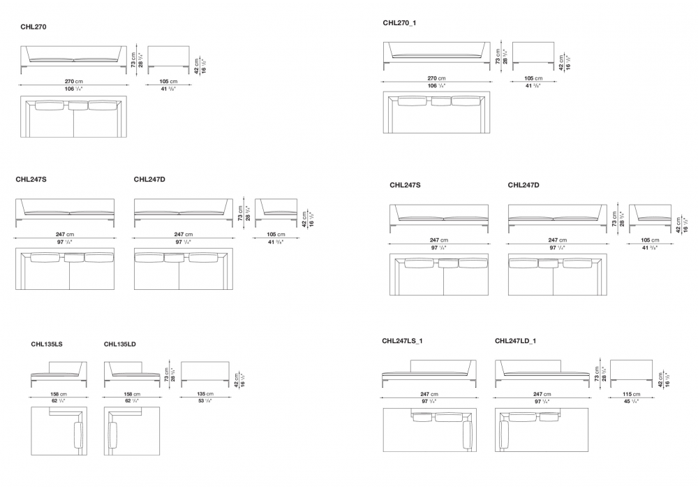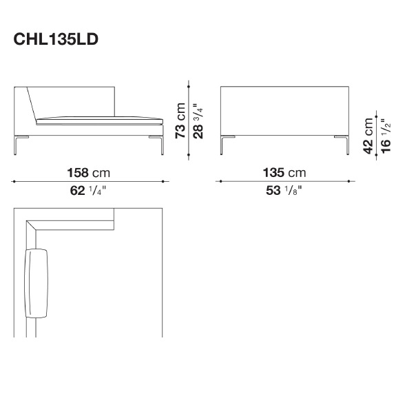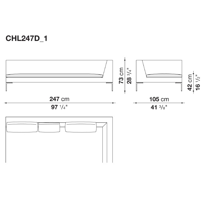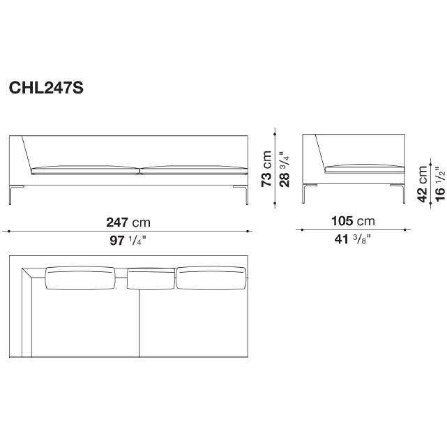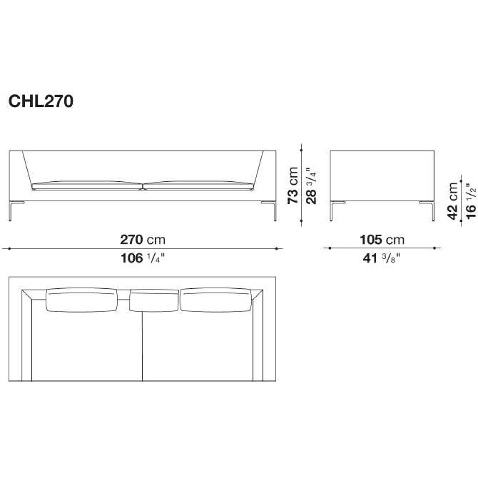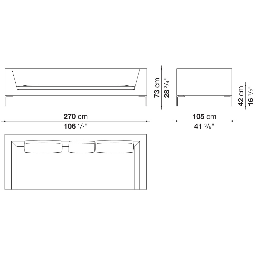 Charles Large conçu par Antonio Citterio pour B&B Italia, est un canapé avec structure interne en tubes et profilés d'acier et rembourrage en mousse de polyuréthane flexible à froid Bayfit®, revêtement en fibre de polyester. Revêtement en différents tissus ou cuirs.