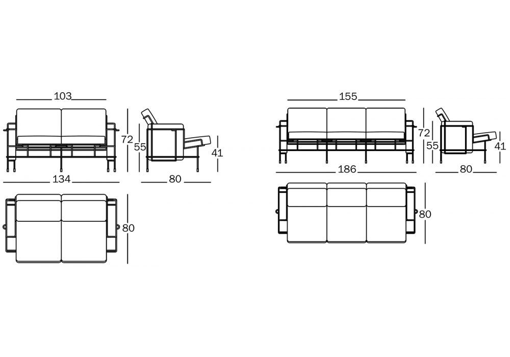 | Dimensions | 134 x 80 x H 72 cm; 186 x 80 x H 72 cm. |