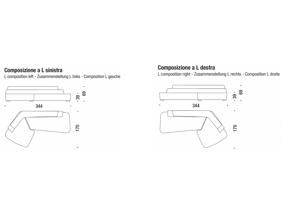 Rift conçu par Patricia Urquiola pour Moroso est un canapé composé d'éléments en mousse de polyuréthane à densités différenciées et fibre de polyester avec une structure interne en bois. Pieds en polypropylène noir vissés à la structure. Revêtement en différents tissus ou cuirs. Disponible en version droite ou gauche.