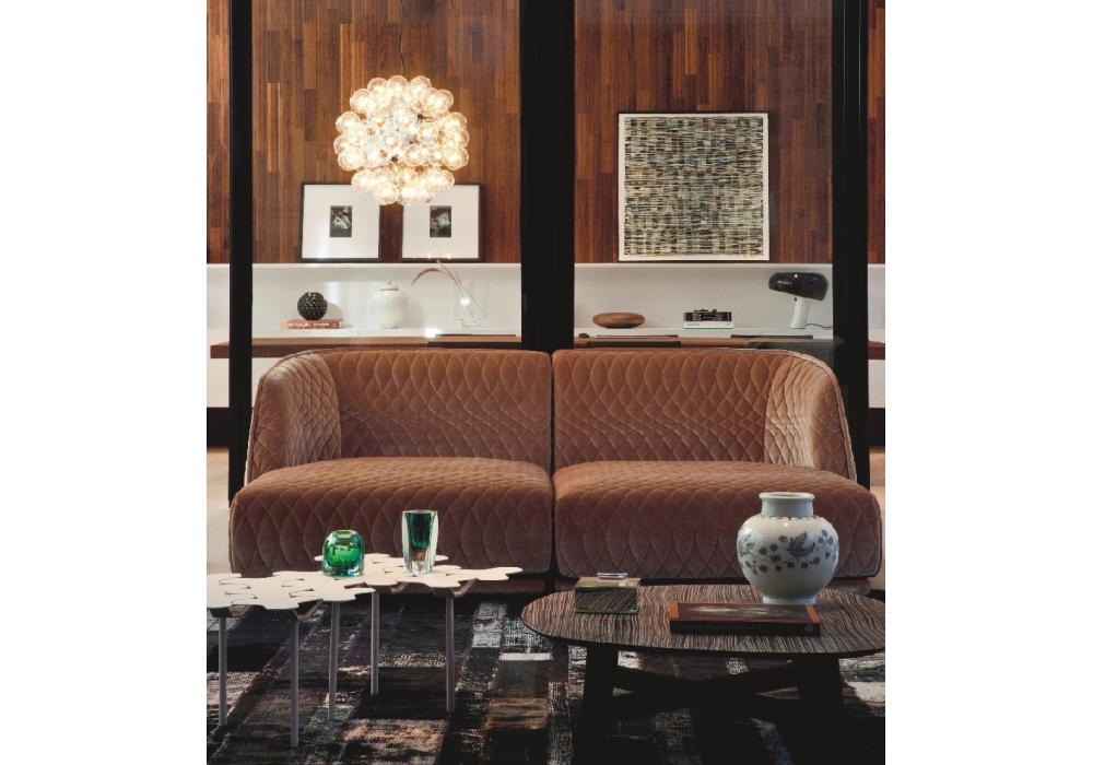 Redondo is the seats collection designed by Patricia Urquiola for Moroso. A collection with a distinctive two–part shape, the padded shell embraces the huge seat cushions. Its curves are shown off by the total absence of sharp corners and the softness of the fabric, and the quilted decoration where the thread, like the lines of a pencil, draws an elegant three-dimensional form to call to the senses. In its design, Redondo is inspired by 1950s and 60s American cars- their upholstered interiors, the soft curves of their bodywork, and on-the-road comfort for long coast-to-coast drives. To the observer, it is the stage for scenes for everyday life.