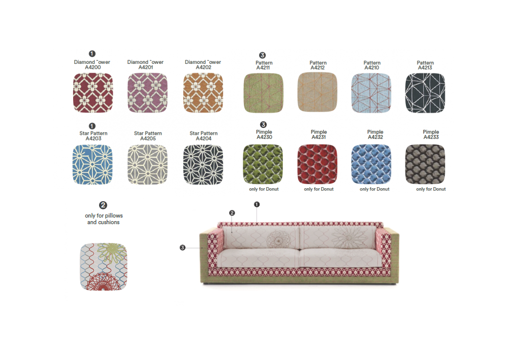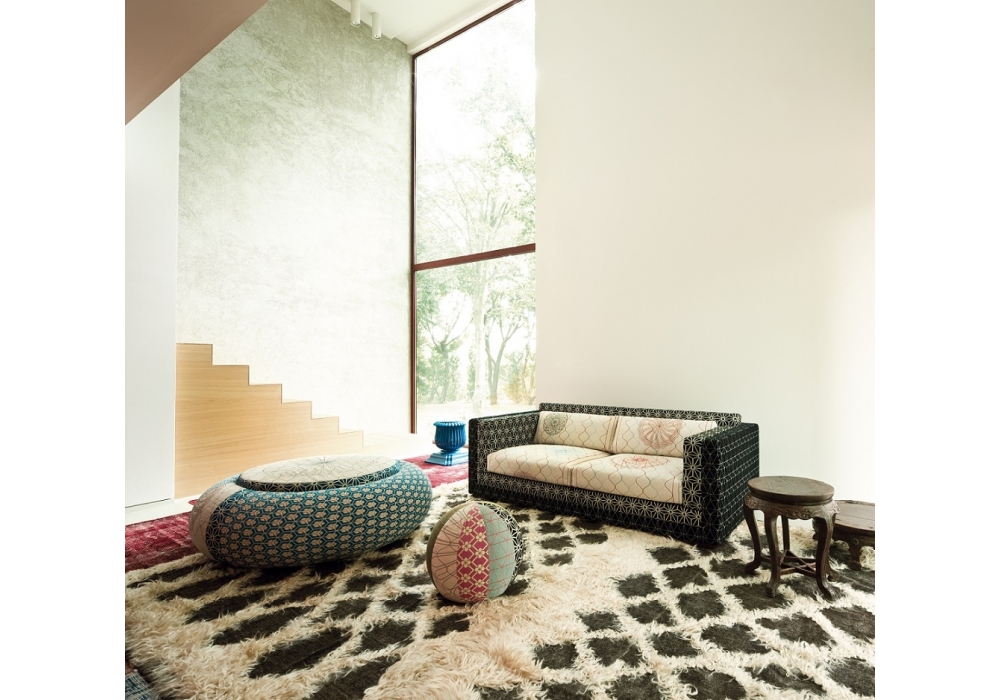 Karmakoma conçu par Edward Van Vliet pour Moroso est un canapé 3 places en mousse de polyuréthane à densité différenciée et fibre de polyester avec structure interne en bois. Revêtement extérieur en tissu.