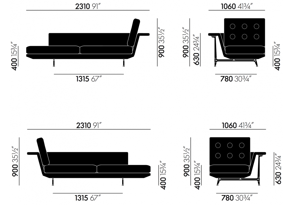 Grand Sofà conçu par Antonio Citterio pour Vitra est une chaise longue avec jambes en aluminium moulé sous pression, et cadre en métal avec mousse moulée en polyuréthane. Disponible en différentes finitions.