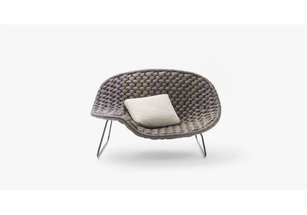 Shito conçue par Francesco Rota pour Paola Lenti est une chaise longue pour l'intérieur, avec revêtement fixe tissé à la main sur la structure en Chain Outdoor, avec rembourrage en polyester. Base peinte brillante dans différentes finitions.