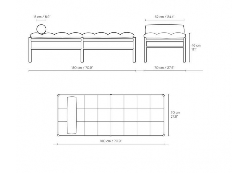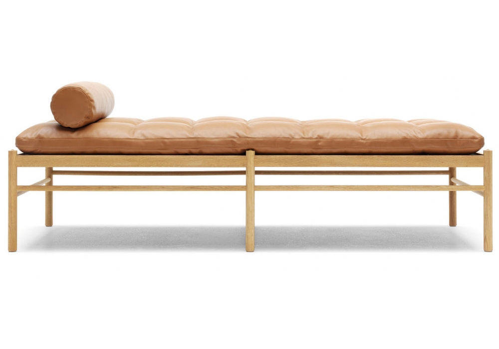 OW150, conçu par Ole Wanscher pour Carl Hansen & Søn, est un daybed avec un cadre en chêne massif disponible en différentes finitions. Le matelas est recouvert de tissu ou de cuir. Disponible avec ou sans coussin d'appui-tête.