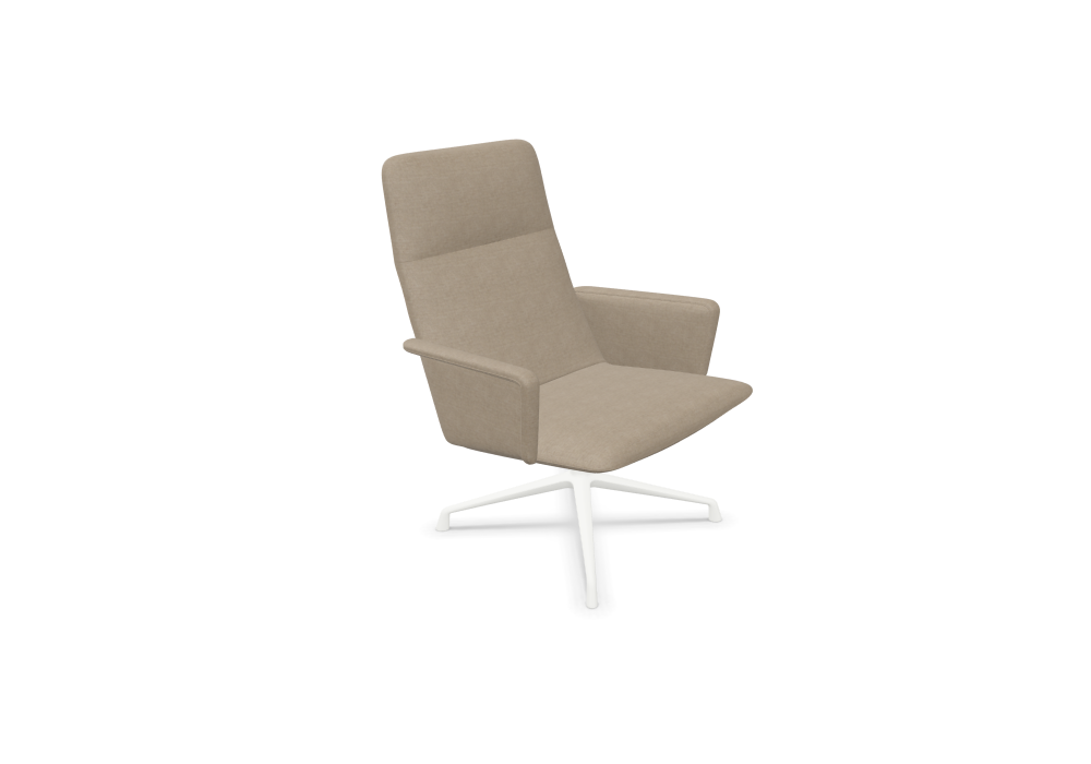 Capri Lounge conçue par Piergiorgio Cazzaniga pour Andreu World est une chaiselongue avec dossier disponible en 3 hauteurs différentes, rembourrée et recouverte de divers tissus, cuirs ou simili cuirs. Les bases disponibles sont : base pivotante 4 branches en aluminium à retour automatique et finition en aluminium poli blanc ou noir, base centrale en aluminium à 5 roues, pivotante et réglage pneumatique de la hauteur. Les accoudoirs sont entièrement rembourrés ou en aluminium avec une surface supérieure rembourrée.