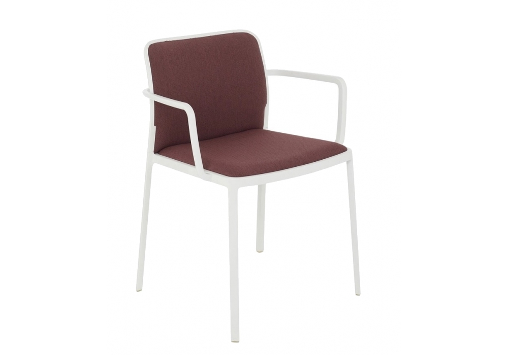 Audrey Soft conçue par Piero Lissoni pour Kartell est une chaise réalisée avec une structure en aluminium peint et assise et dossier en polyuréthane avec revêtement en tissu. Disponible avec ou sans accoudoirs.
