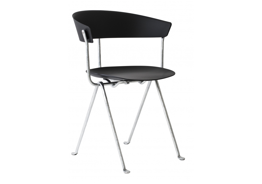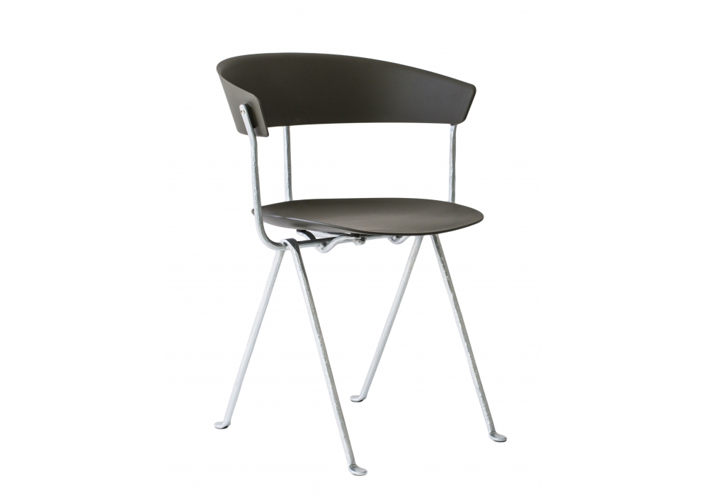 Officina conçue par Ronan & Erwan Bouroullec pour Magis est une chaise en fer forgé, galvanisé à chaud ou peint polyester. Assise et dossier en multiplis de hêtre ou en polypropylène. Sur demande, l'oreiller est également disponible.