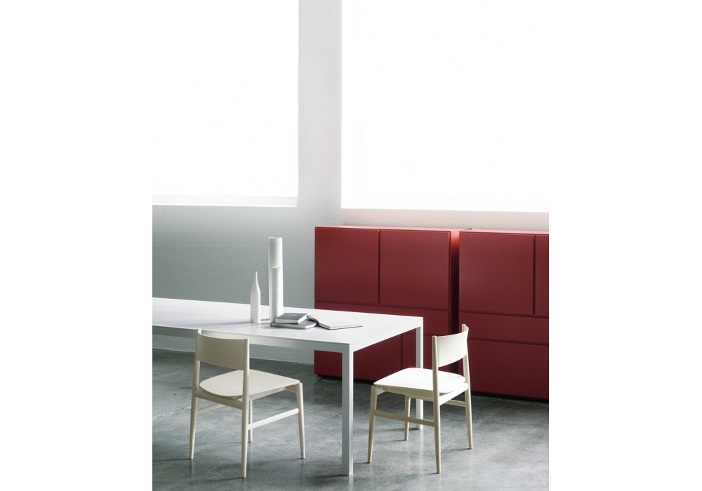 Neve is a chair designed by Piero Lissoni for Porro. Neve is a chair with exact yet soft lines, which reinterprets the classic wooden chair in a contemporary vein. While the support structure is characterised by a frame of slightly inclined, clear lines of various thicknesses, the roundness of the spindle legs and the slim curvature of the back and suspended seat soften its figure, making it extremely welcoming and intimate.