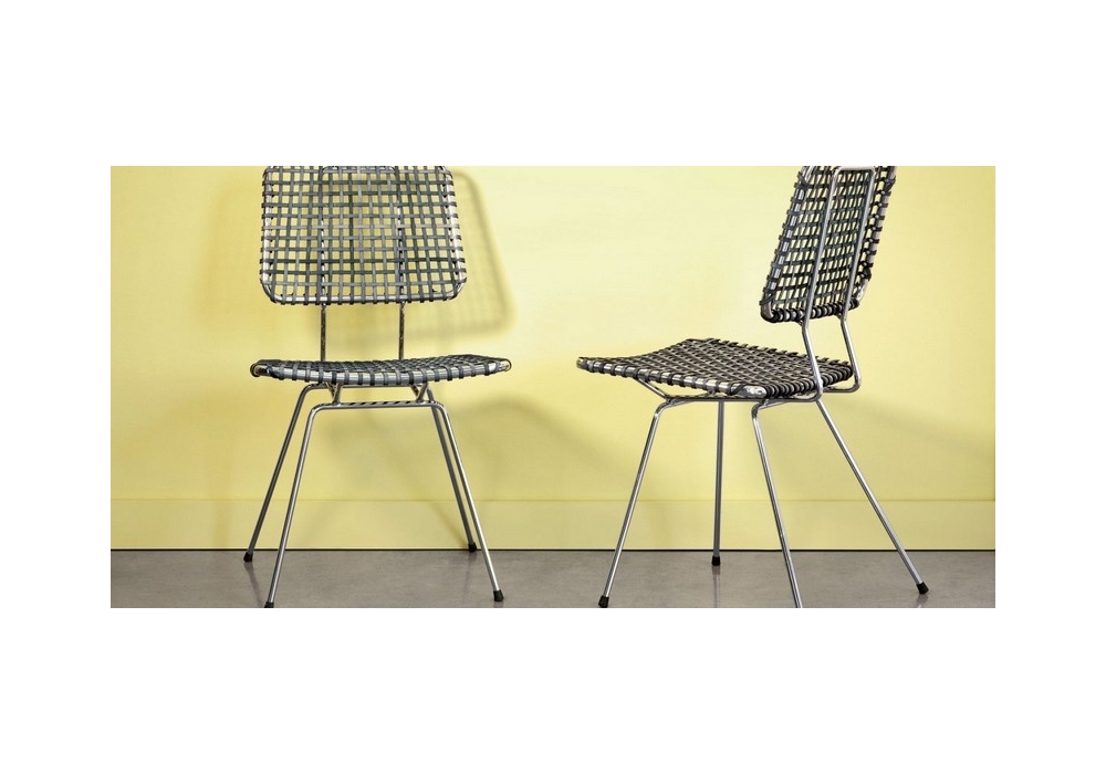 Brick 23 conçue par Paola Navone pour Gervasoni est une chaise avec structure en acier chromé, assise et dossier tressés en parchemin gris.