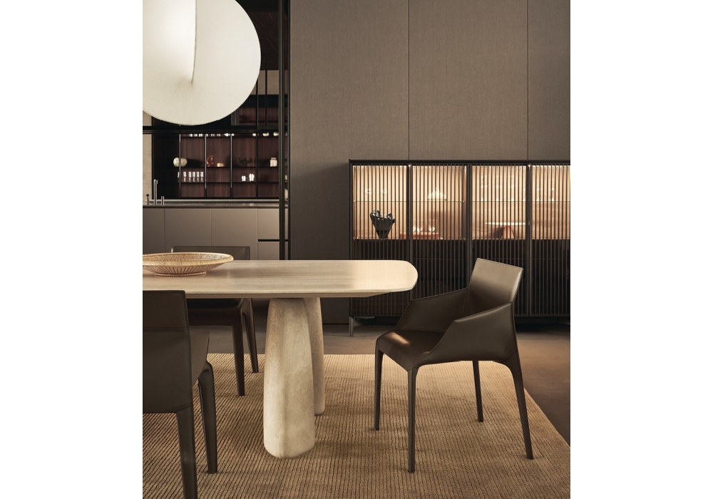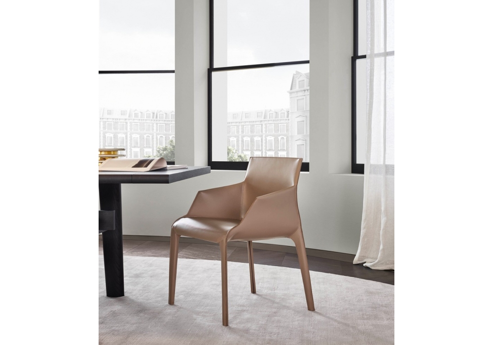 Seattle conçue par Jean Marie Massaud pour Poliform est une chaise avec accoudoirs réalisée avec des pieds en bois massif ou en métal revêtus de cuir. Assise avec structure en métal revêtue de cuir, sous-assise en polyuréthane intégral.