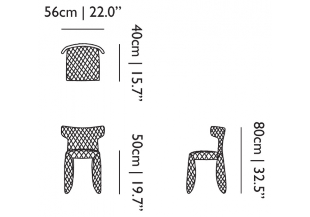 Monster Chair conçue par Marcel Wanders Studio pour Moooi est une chaise rembourrée avec accoudoirs et revêtement en tissu.