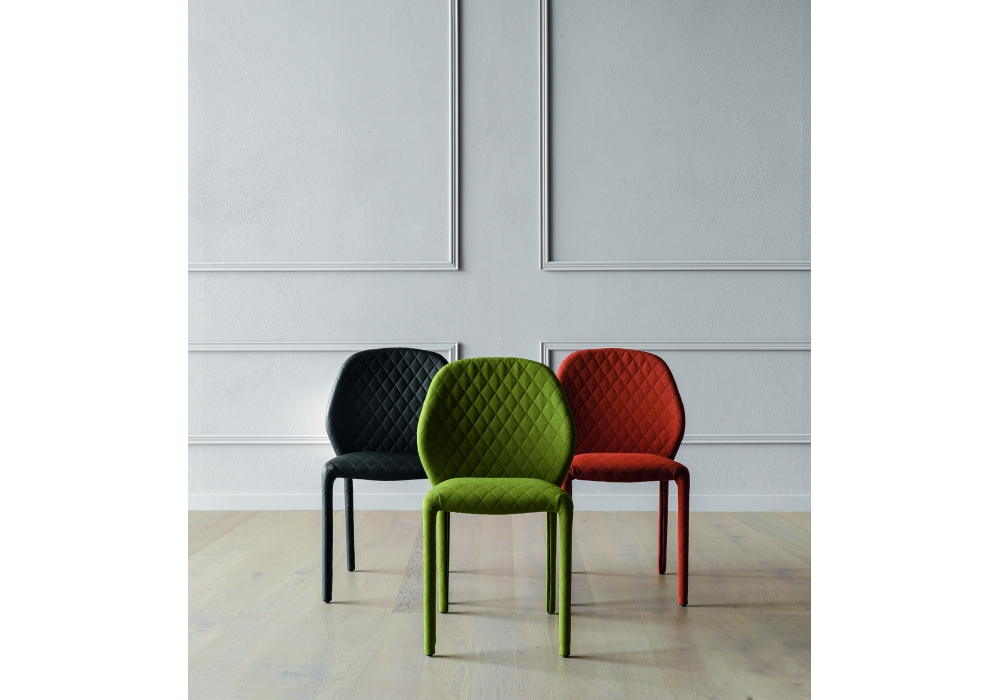Dumbo conçue par Zaven pour Miniforms est une chaise rembourrée avec revêtement en cuir ou en tissu. Sur demande, il est également disponible avec broderie diamant.