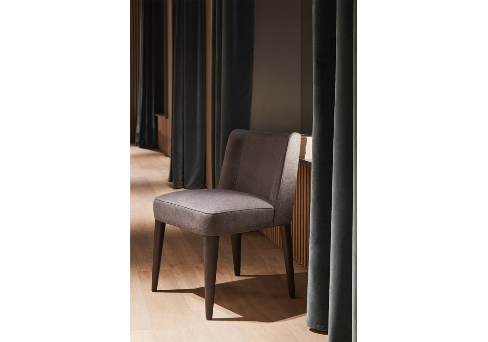 Kita designed by Andrea Parisio for Meridiani is a chair with with legs in black, light and almond and stained oak. Upholstery available in fabric or leather. Frame in moulded polyurethane foam with metal insert.